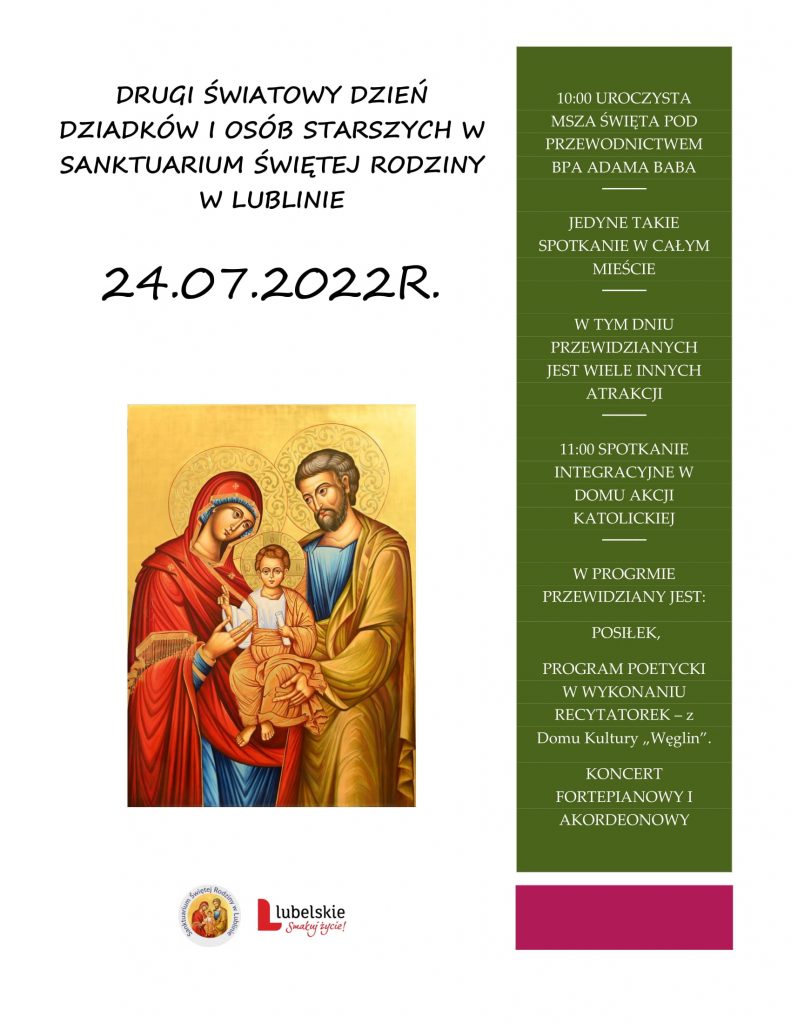 W niedzielę 24 lipca 2022 r. o godz. 10.00 została odprawiona uroczysta Msza Święta z okazji ustanowionego przez papieża Franciszka Światowego Dnia Dziadków i Osób Starszych. Eucharystii przewodniczył Ksiądz Biskup Adam Bab.